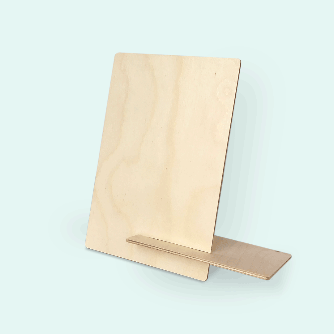 Packaged in a cellophane bag Slotted wood easel made from baltic birch plywood