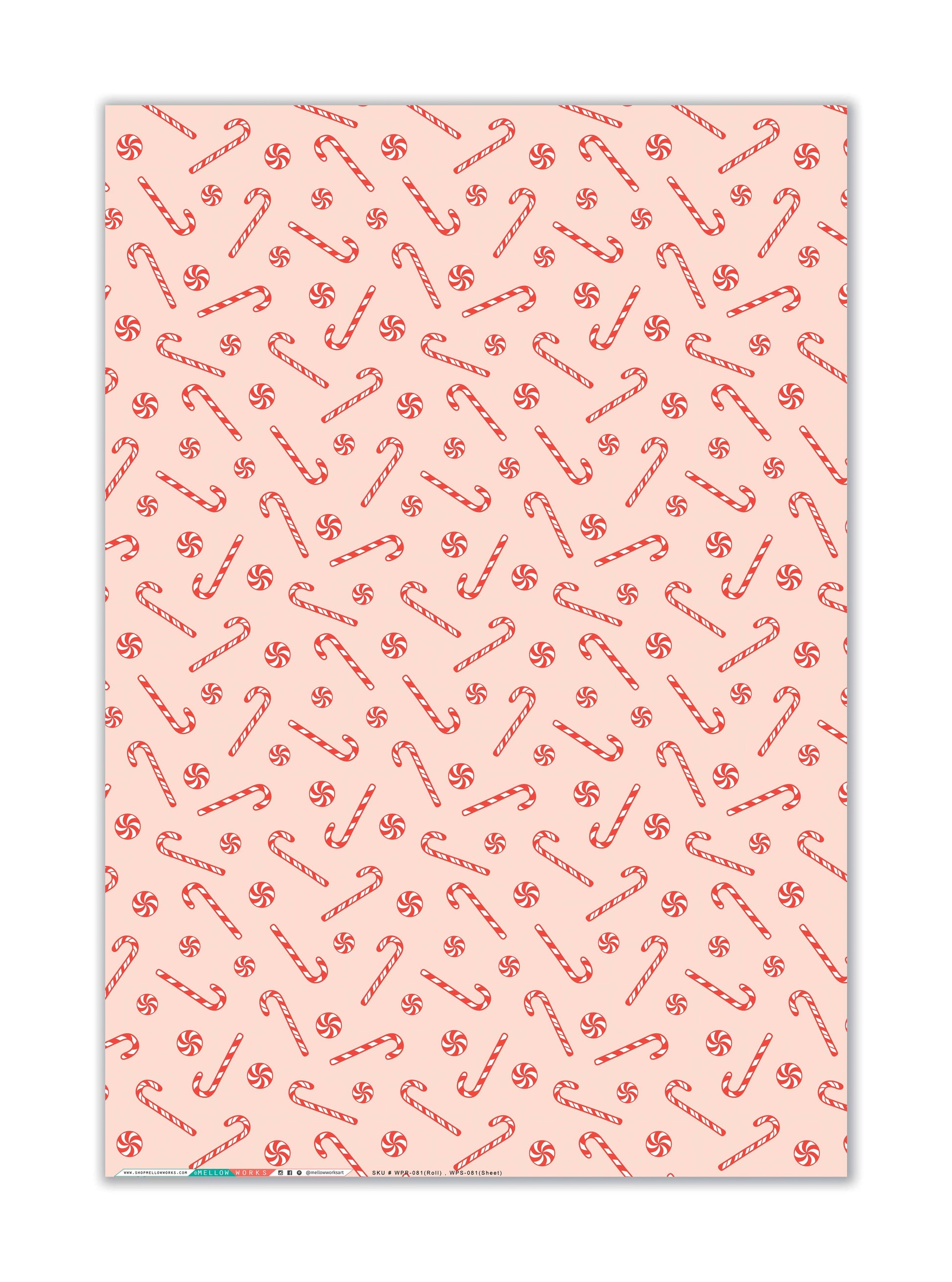 A simple and modern candy canes and holiday mints wrapping paper in a warm blush and classic red. This modern Candy Cane Lane paper will look great paired with any of our holiday papers. Printed in rich color on thick luxurious paper which makes it easy to wrap with perfect folds. The paper cuts clean and does not rip while wrapping.