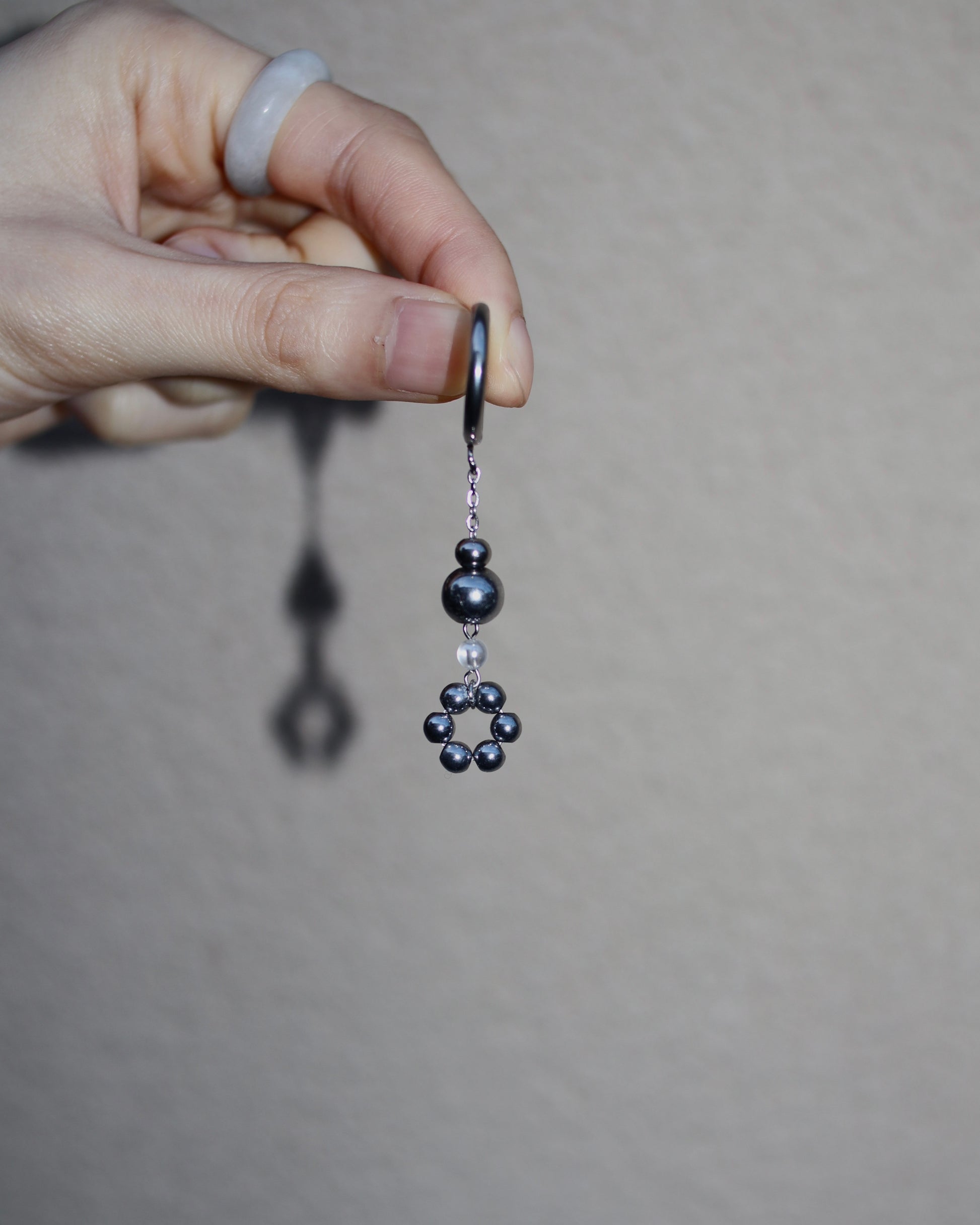 These earrings are a two-in-one design. Loop the Chazu flower through the hoop for the "cycle-like" effect or leave it long for an elegantly edgy dangling look.