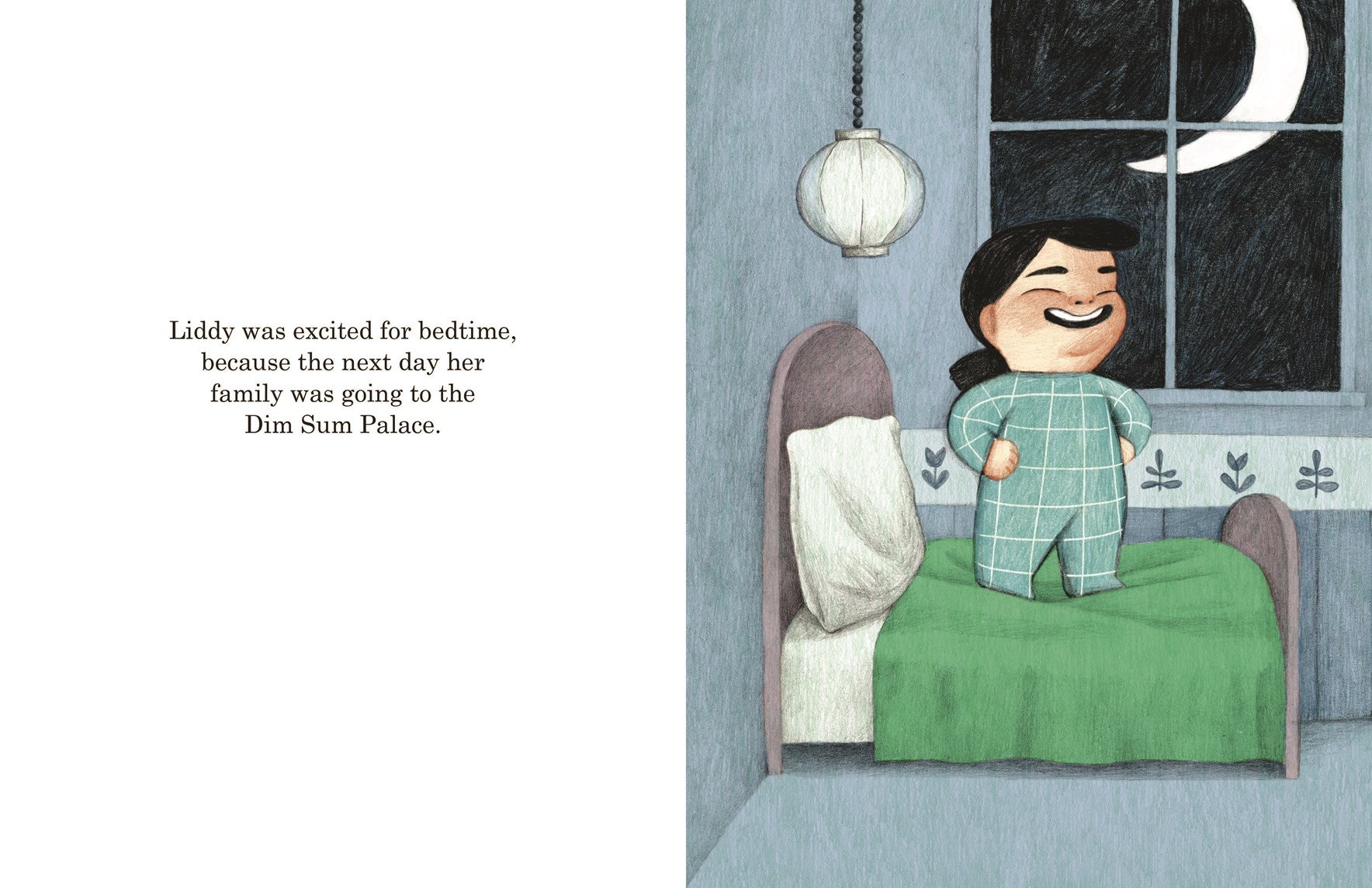 Liddy is so excited about going to the Dim Sum Palace tomorrow with her family that she can't sleep. So when a delicious smell wafts into her room, she hops out of bed, opens her door and steps into . . . an actual palace of dim sum! There are dumplings, baos, buns and more delicious treats than one girl can possibly eat. Liddy just has to take a bite, but she slips and falls . . . into a bowl of dumpling filling. The chefs are so busy rolling, folding and pinching dough that they don't notice they've prepared a most unusual dumpling for the Empress — a Liddy dumpling! Worst of all, she looks good enough to eat . . .