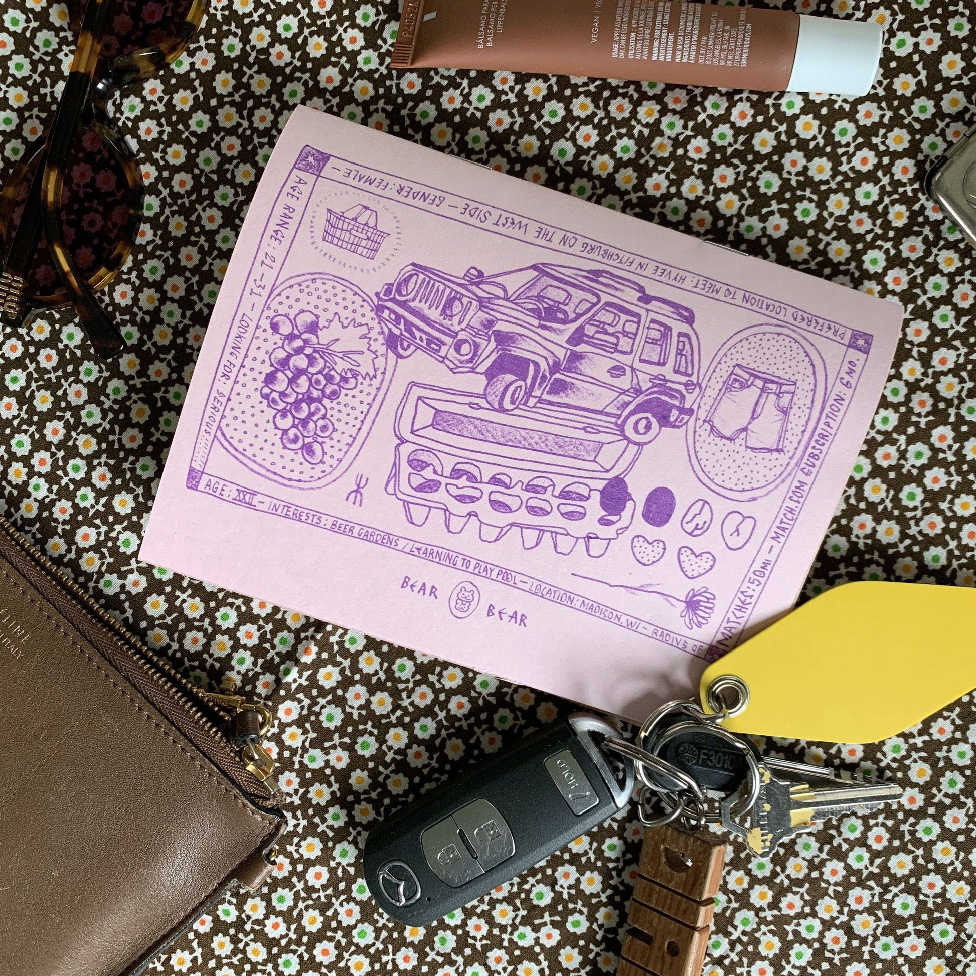 BearBear launched as a self-publishing Risograph studio in 2019 by two artists who desired to see their work on bookshelves on their own terms. Inspired by DIY zine culture and gig-poster screen prints, BearBear attends to the intricate details of book design with a wabi-sabi ethos. BearBear’s posters, prints, and art books act as a wholesome yet radical antidote to homogenous mass-produced volumes. The studio aspires to deliver contemporary ideas of selfhood + beauty, with a retro aesthetic, to the creative class’s bookshelves and imaginations.