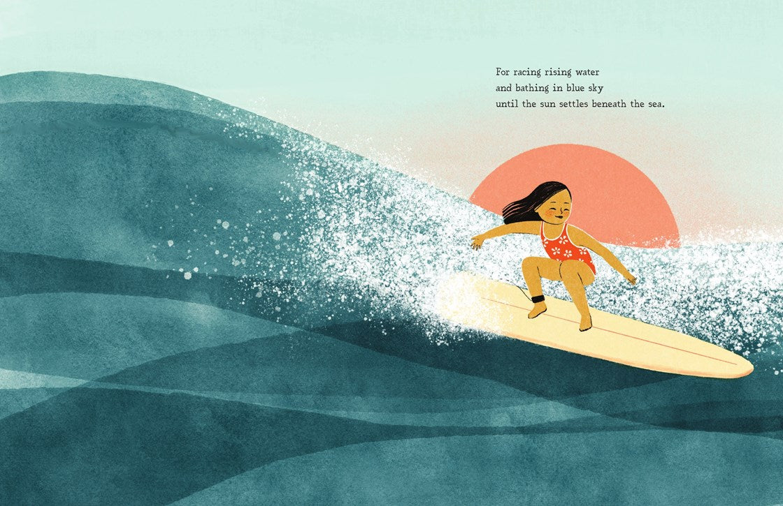 From the shores of Japan to the coast of Hawai‘i, old customs are honored, new traditions blossom, and an exuberant narrator defies narrow beauty standards to embrace the skin she’s in and her life on the island of Kaua‘i. Triumphant text and radiant artwork encourage readers to challenge expectations and celebrate how identity and experience find their perfect expression in each of us.