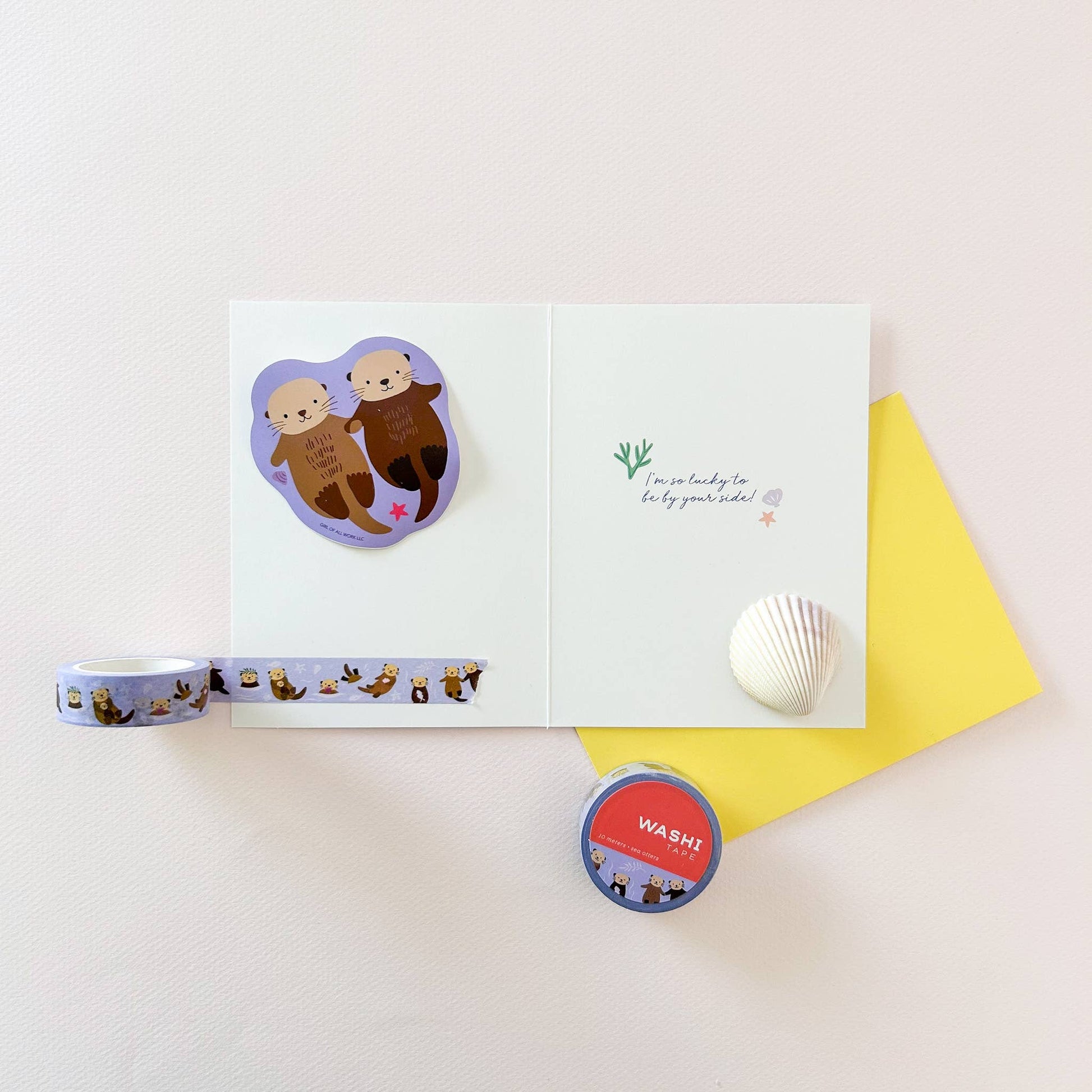 Sea otters frolic and play in this adorable washi tape pattern. These 15 mm wide rolls pack a punch with their striking designs and color, not to mention their eye-catching packaging makes them the perfect gift for all crafters and DIYers.